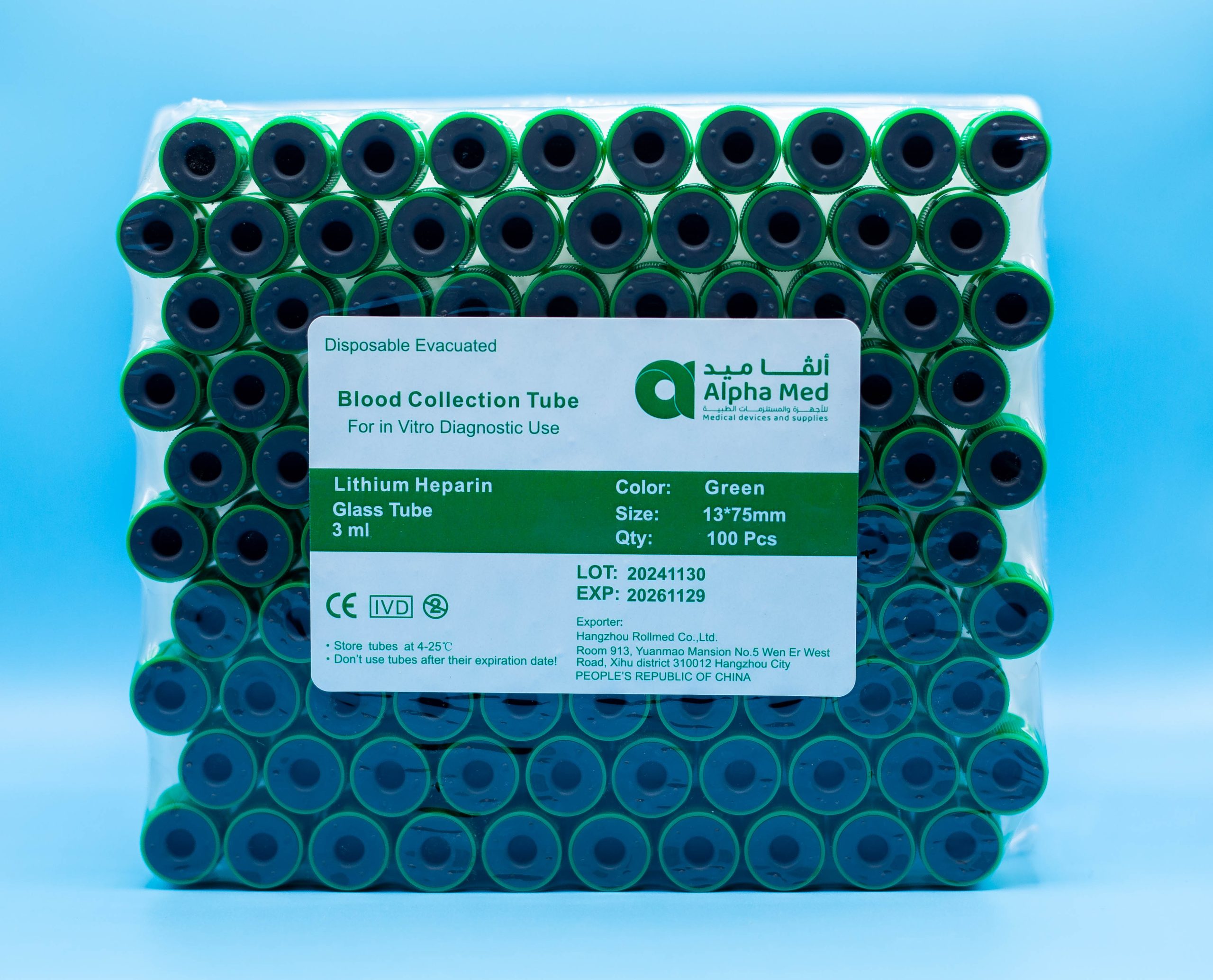 Blood Collection Tube For in Vitro Diagnostic Use/ Green Color/ Glass Tube/ 3 ml